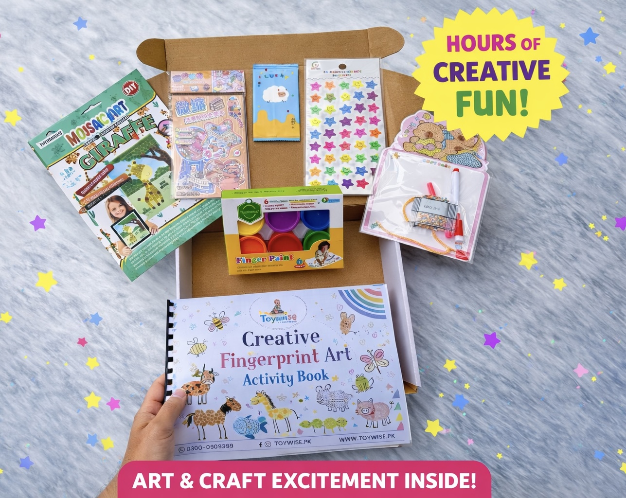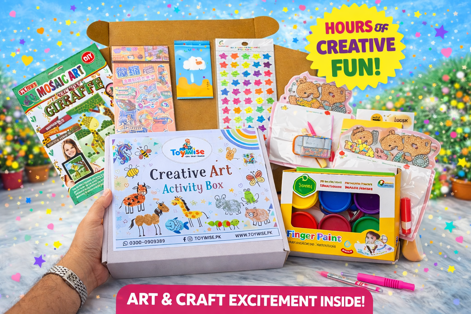 The Toywise Creative Art Activity Box is a complete kids art and craft kit designed to boost creativity, imagination, and fine motor skills β all while having fun!