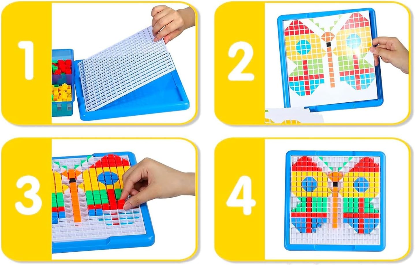 • Equipped with a sturdy pegboard grid and numerous vibrant square/triangular pegs, children can create an infinite array of images. From animals and characters to abstract patterns and their own unique designs, the only limit is their imagination!