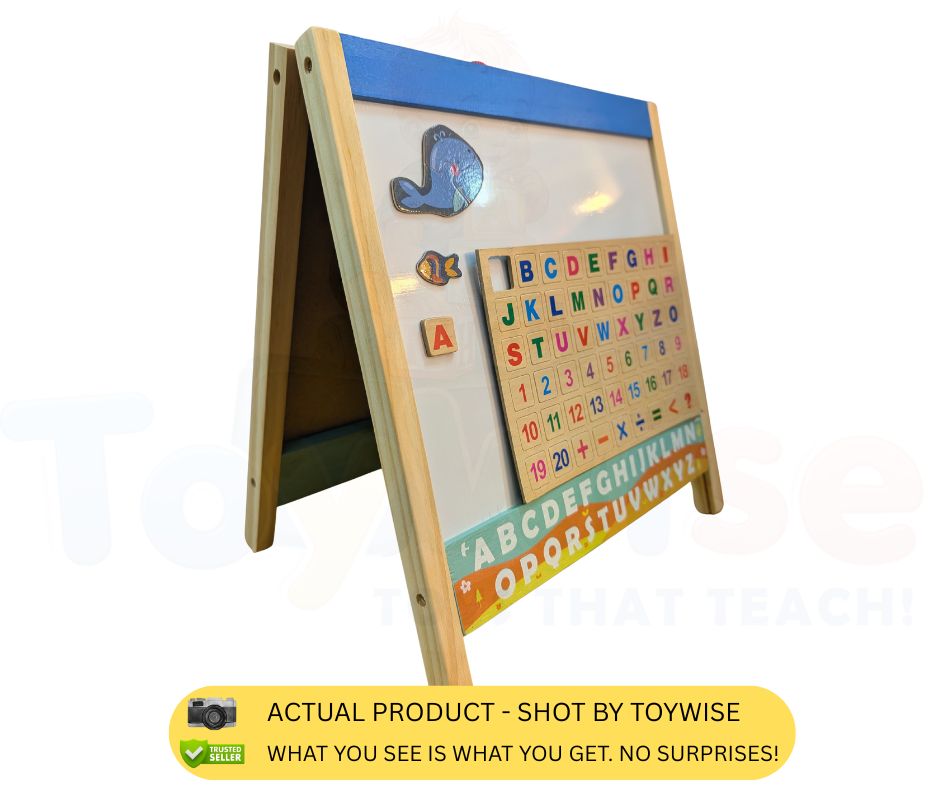 ✏️ Wooden Tabletop Magnetic Whiteboard & Blackboard – 2-in-1 Educational Writing Board for Kids
