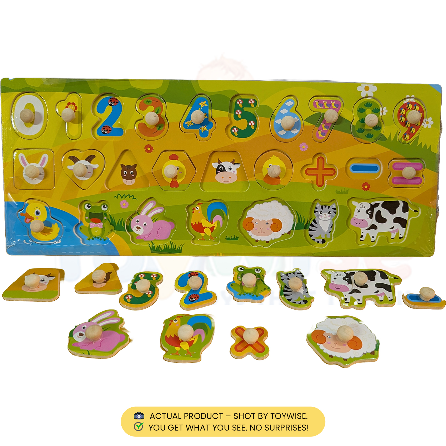 Wooden Knob Puzzle – Numbers, Shapes & Animal Matching Game (High-Quality Montessori Toy)